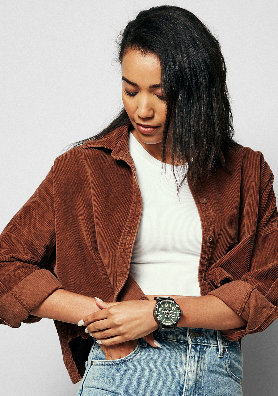 More than a pretty face with a giant ego, the 51-30 Chrono is the ultimate statement piece that bridges the gap between fashion and function. With a new refined movement, it commands the room at first glance with an oversized face, boldly printed indices, and custom-molded hands. This is the OG of big-time style.