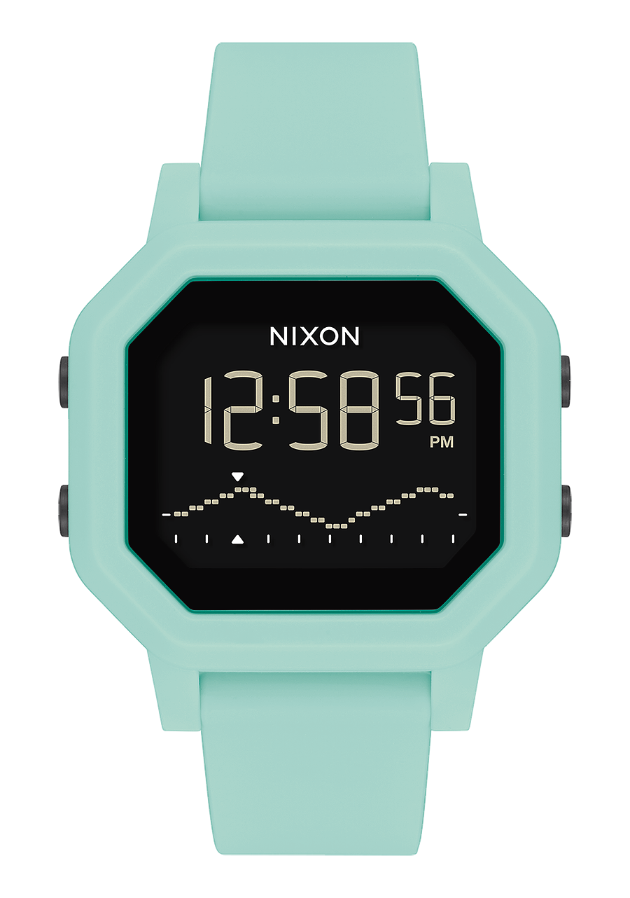 An essential tide watch with both style and substance, the Siren matches contemporary design with surf-specific features and sustainable materials. #Tide recycled plastic uses ocean-bound waste to create the super-durable case material, which means cleaner breaks for everyone. Plus, the basic tide functionality and soft silicone band mean it slays both in and out of the water.