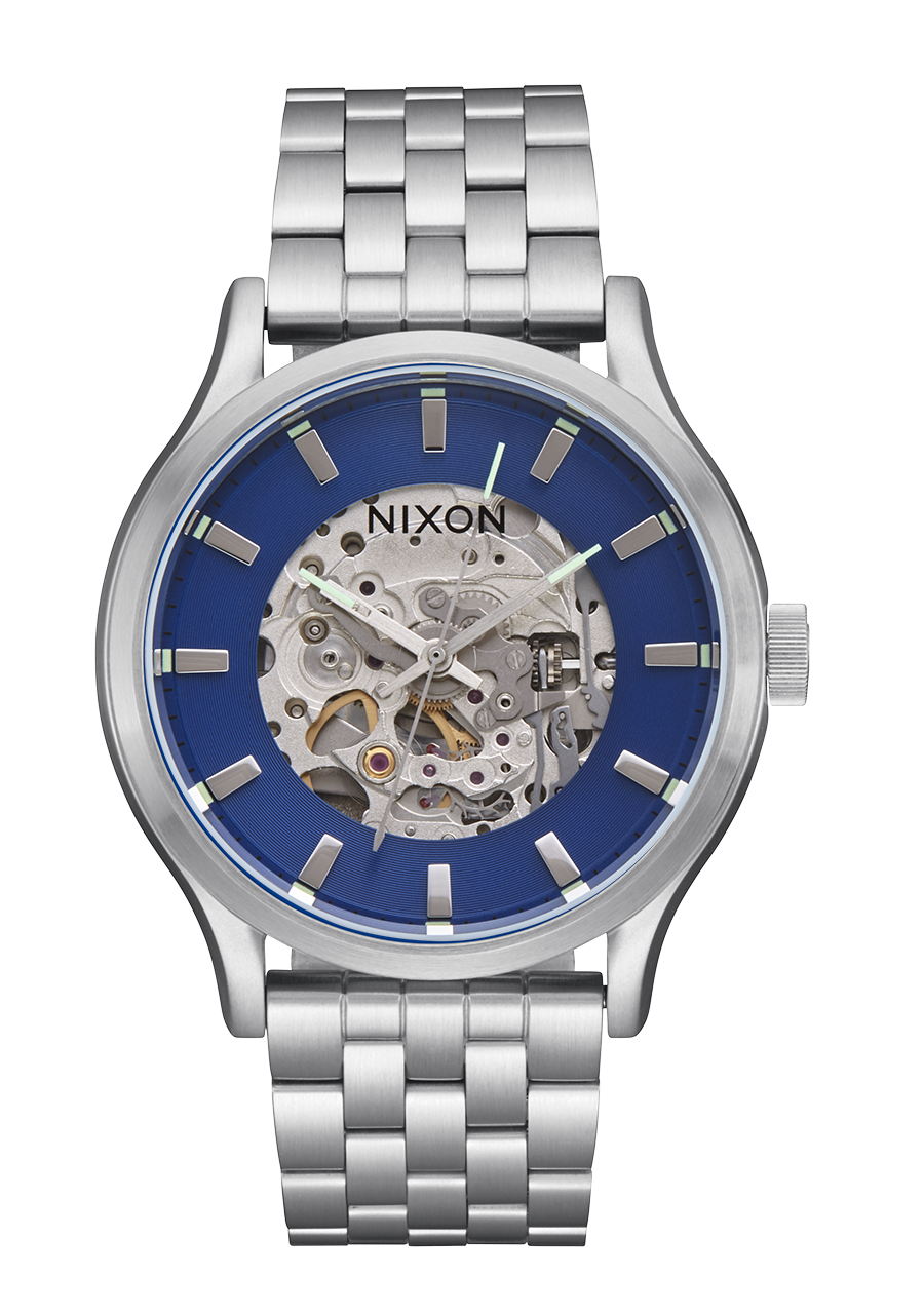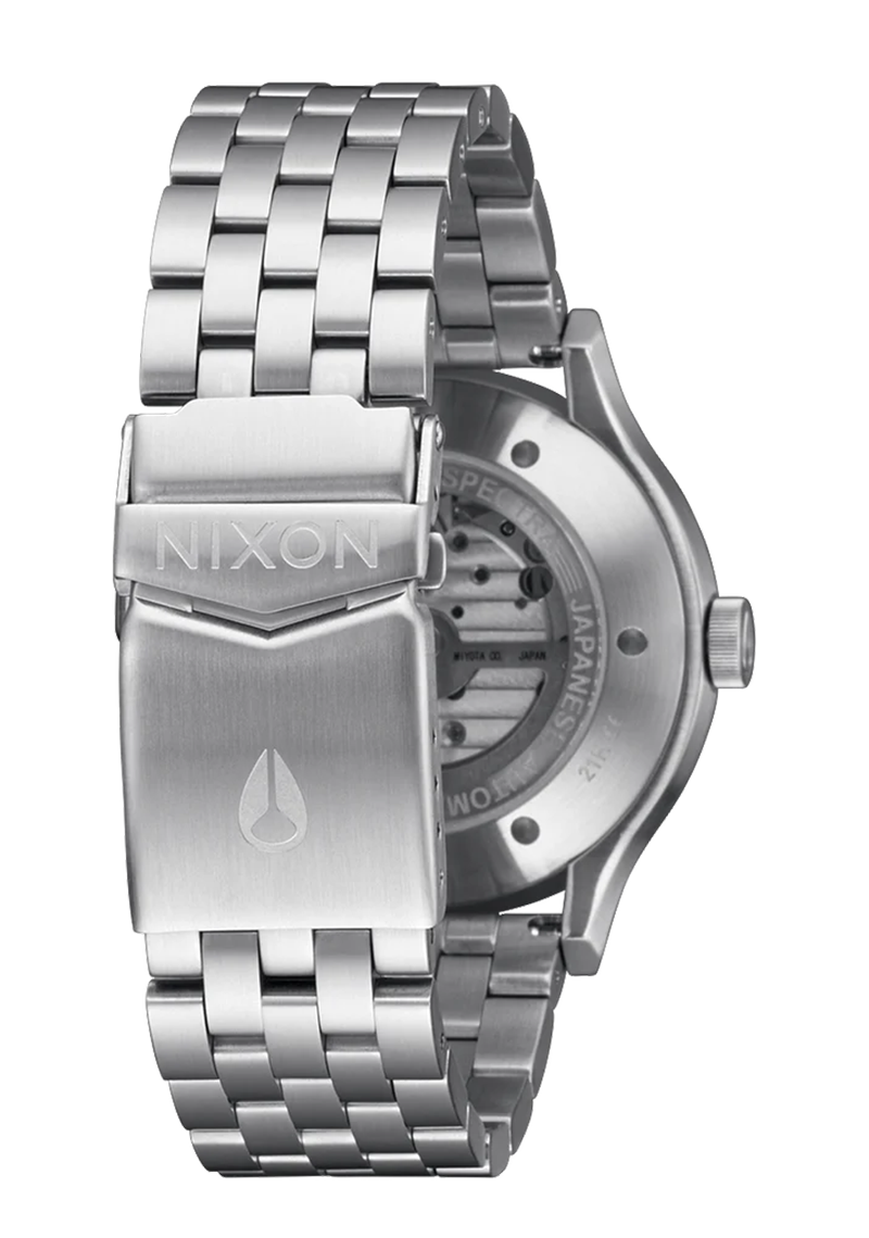The Spectra utilizes the brilliant engineering of the automatic movement to inspire its modern design. An exhibition dial showing the inner workings turns it into three-dimensional, active artwork. Yet, boldly defined indices, minute markers, and hands combine easy visibility with tasteful design.