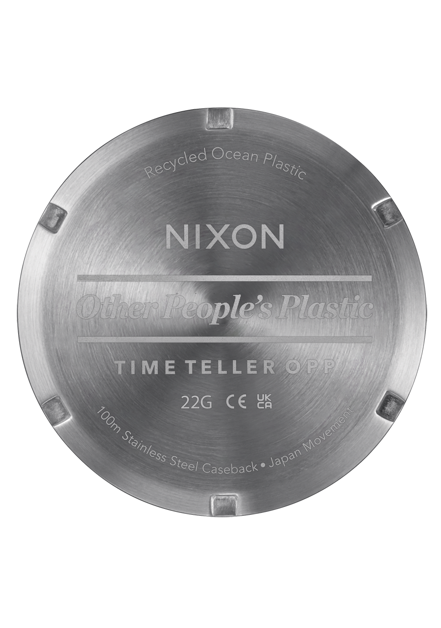 An icon of Nixon heritage, the Time Teller OPP just got an environmental upgrade. Now loaded with vibrant colors and a super supple silicone strap, the minimalist design is the perfect piece for your own aesthetic expression. Painted hands and indices provide easy visibility. Plus, it's made with Other People's Plastic, injecting sustainability into a classic. *SeaTrees colorways contain a unique caseback, while a portion of all Seatrees timepiece sales will go towards the effort to save coastal ecosystems.