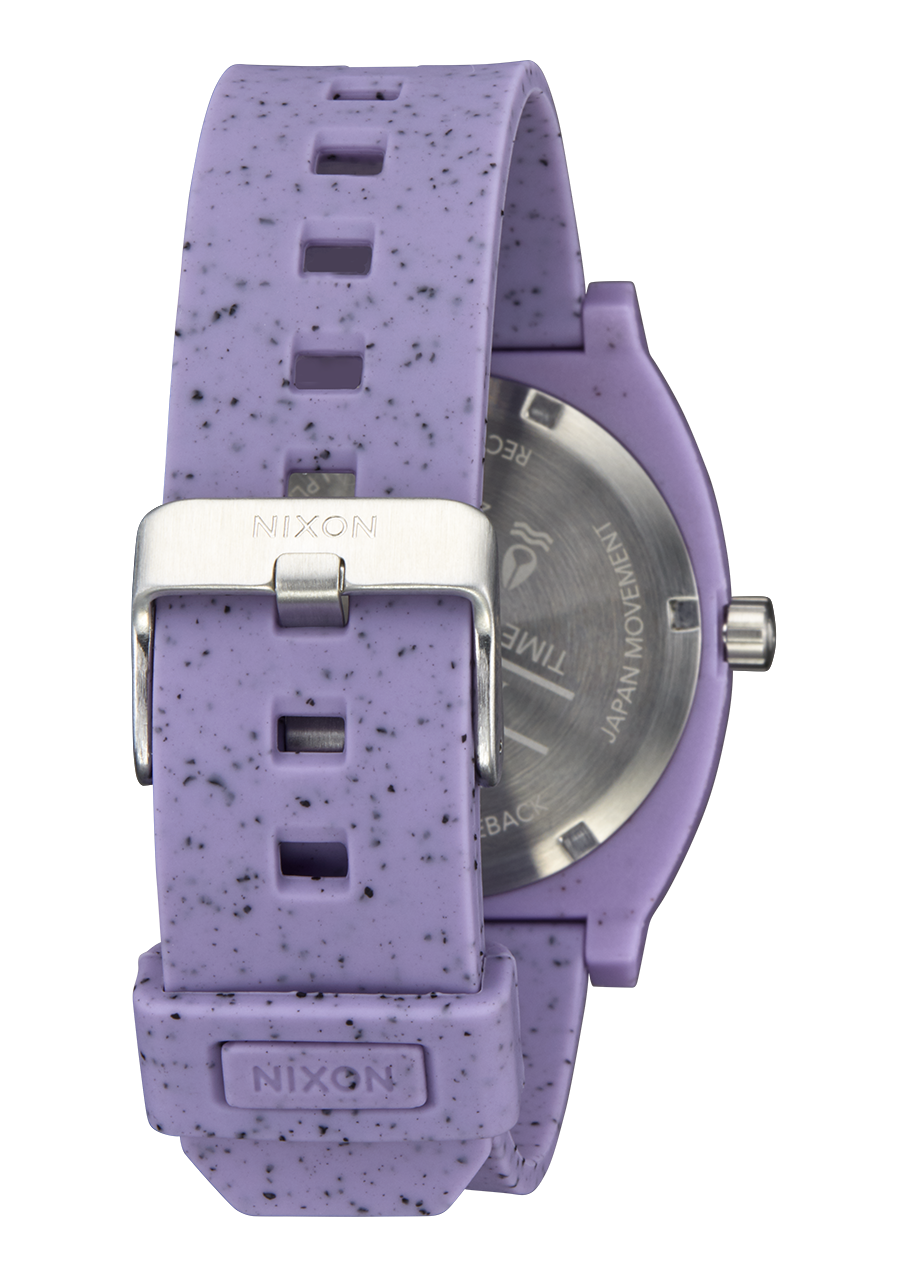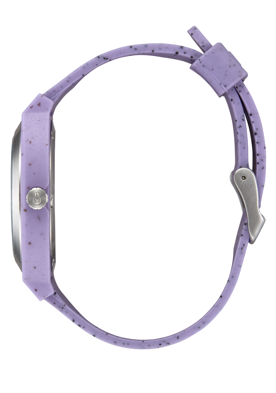 The band is made out of a durable yet soft silicone infused with flecks of post-industrial silicone with a patented locking looper and polycarbonate buckle