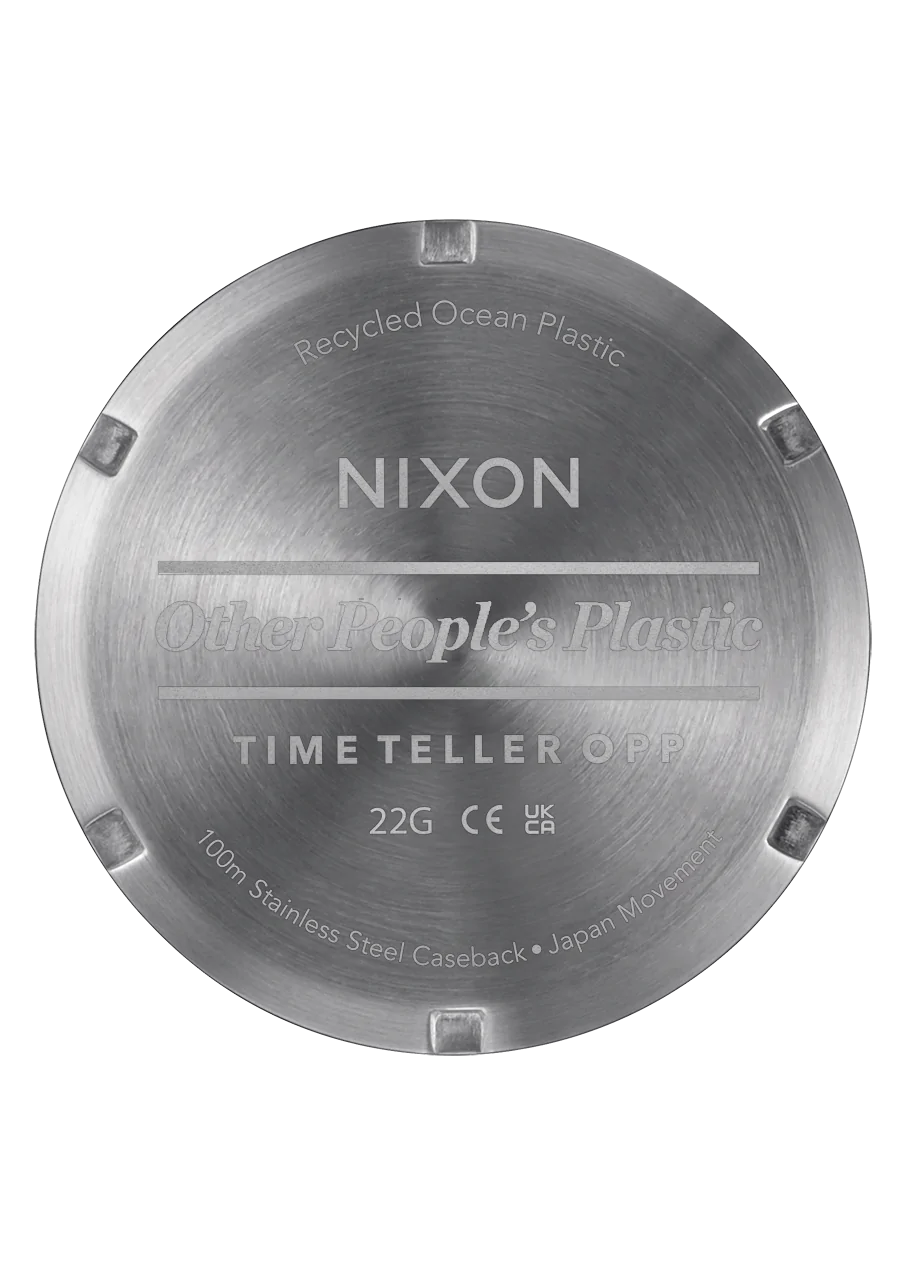 An icon of Nixon heritage, the Time Teller OPP just got an environmental upgrade. Now loaded with vibrant colors and a super supple silicone strap, the minimalist design is the perfect piece for your own aesthetic expression. Painted hands and indices provide easy visibility. Plus, it's made with Other People's Plastic, injecting sustainability into a classic. *SeaTrees colorways contain a unique caseback, while a portion of all Seatrees timepiece sales will go towards the effort to save coastal ecosystems.